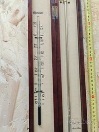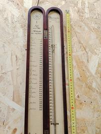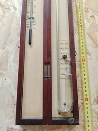 Barometro a mercurio Naudet Parigi Cedo termometro + barometro a mercurio (Torricelli) marca: Naudet Parigi dal 1860 Struttura in legno altezza 95 cm cerniere in ottone, si chiude come una custodia interno in cuoio chiaro scritte in lingua francese laccio in cuoio per appenderlo purtroppo spezzato Il barometro ha perso un po' di mercurio, maneggiare con cura: c'è mercurio su quasi tutta la lunghezza del tubicino lungo in vetro. Struttura, cerniere e chiusure, vetri tutto in ordine. Solo scambio a mano vicino Tortona AL possibilità di vedersi a Milano zona Opera Euro 90,00 Non spedisco, troppo delicato