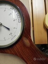 Barometro da parete in legno colore noce scuro, lunghezza cm 40 circa, diametro cm 14 circa, funzionante, come da foto.
