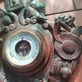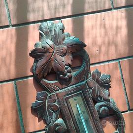 🌻 Spettacolare barometro e termometro francese in legno intagliato a mano