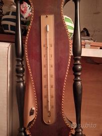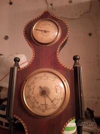 Questo è un barometro, termometro e igrometro vintage in legno.