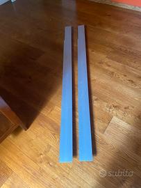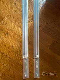 Coppia di lampade, marca Flos, modello Riga, lunghezza 200 cm, in perfette condizioni, materiale alluminio, colore alluminio.