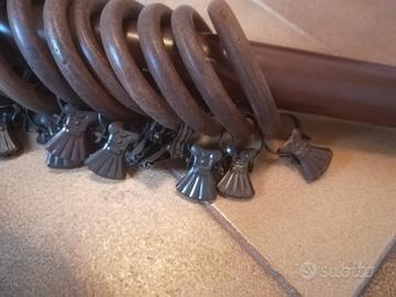 Vendo barra in legno per tende. Sono compresi gli anelli con le pinze e i 3 supporti in legno a muro. Nelle foto si possono trovare le misure.