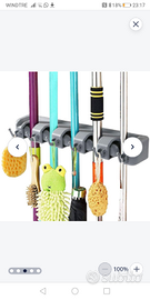 BARRA PORTASCOPA APPENDITUTTO SALVASPAZIO CON GANCI E MORSE PER 11 ACCESSORI Usata ma in perfette condizioni. Viti e tasselli non compresi