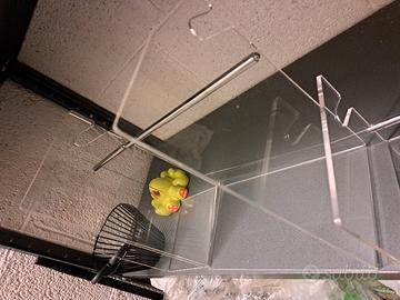 tre barre portatutto cucina, due satinate una lucida con portabarattoli cromati e altri accessori attuali e di design trasparenti e cromati.