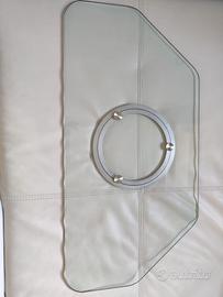 Bellissima base supporto girevole (360°) per tv, in vetro trasparente. Moderna ed elegante. Tutto in condizioni perfette. Perfetta per un 55 pollici. Meccanismo di rotazione perfettamente funzionante e fluido. Struttura molto robusta.