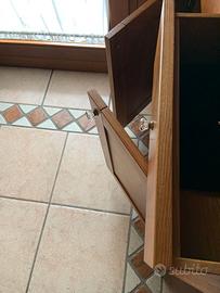 Vendo nr 1 mobile base ingresso di noce nazionale costituita da pannelli di multistrato alleggerito e rivestimento delle superfici con cartella di Noce Nazionale spessore 2 mm, finitura naturale con fondo di olio duro e finitura a cera d'api ditta BIOFA' , dimensioni mm L1020P385H880 completo di nr 2 cassetti e ripiano interno come foto, ritiro diretto a casa mia con carico e trasporto a cura acquirente.