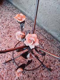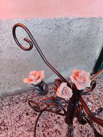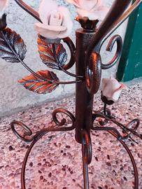 Base in ferro battuto rose ceramica artigianale.