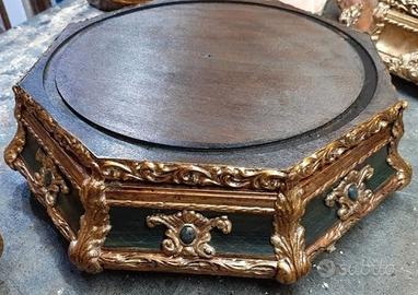 Realizziamo basi in legno di prima qualitร lavorate a mano con fregi in pasta di legno e decorate da maestri decoratori con foglia oro o argento. Lavorazioni artigianali come vuole lโantica tradizione napoletana tramandata dai maestri della scuola partenopea. I prezzi contenuti sono la nostra regola principale per far si che in tutte le case possa entrare lโartigianalitร dei nostri prodotti. Personalizziamo misure e decori. Basi in legno artigianali con lavorazione barocca per presepi, pastori, nativitร , statue, vaso, modellismo, manufatti, ostensorio, processioni realizzabili con qualsiasi fregio e misura.