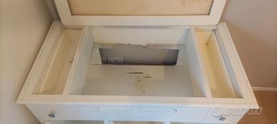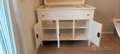 Base Lavabo in Arte Povera con Specchio Descrizione: Vendo base per lavabo bagno in stile arte povera, realizzata in legno massello laccato di colore bianco caldo. Questo mobile, completo di cornice specchio, è ideale per un arredo rustico, semplice e tradizionale che richiama le atmosfere delle case di campagna e delle abitazioni contadine di un tempo. Caratteristiche Principali: Materiale: Legno massello laccato Colore: Bianco caldo Dimensioni Base Lavabo: 105 cm (L) x 57,5 cm (P) x 81 cm (H) Dimensioni Cornice Specchio: 96 cm (L) x 105 cm (H) Spazio di Stoccaggio: Due cassetti e tre ante che nascondono due solidi ripiani interni Dettagli Artigianali: Lavorazione manuale con intagli, pannelli scolpiti e modanature che richiamano la tradizione artigianale Forme Semplici: Linee sobrie e funzionali con pochi ornamenti Proporzioni Armoniose: Mobile robusto ma proporzionato, con un’attenzione particolare alla praticità Esempi di Utilizzo: Bagno Rustico: Perfetto per arredare un bagno in stile rustico, donando un tocco autentico e senza tempo. Case di Campagna: Ideale per case di campagna o abitazioni che desiderano richiamare uno stile tradizionale e accogliente. Spazi di Stile: Ottimo per chi cerca un mobile funzionale e di grande impatto estetico, che unisca bellezza e praticità. Condizioni dell'Oggetto: Usato ma in ottime condizioni, senza segni di usura. Pronto per essere integrato nel tuo bagno con un top e un lavabo a tua scelta. Dettagli Aggiuntivi: Consegna: Preferibilmente a mano in zona Colli Aminei, Napoli. Condizioni di Vendita: No perditempo, no affaristi. Spese di spedizione a parte. Contatti: Preferibilmente via e-mail. Base lavabo arte povera Mobile bagno legno massello Lavabo rustico bianco Mobile bagno stile tradizionale Arredamento bagno campagna Base lavabo con specchio Lavabo arte povera Colli Aminei Mobile bagno artigianale Aggiungi un tocco di eleganza rustica al tuo bagno. Contattami per maggiori dettagli e per organizzare la consegna!