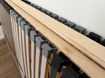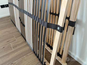 Vendo struttura a doghe per letto 180x200 con spessore di 9 cm. Essendo composta da due pezzi è possibile utilizzarne una per un letto da 90x200. 6 doghe hanno una rigidità regolabile teamite cursori. Il prodotto ha meno di 1 anno d’utilizzo.