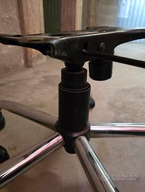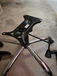 Base per sedia girevole, con ruote, pistone per alzare abbassare la sedia, staffa di fissaggio, staffe braccioli, uno dei braccioli è un pò rovinato. Solo ritiro a mano.