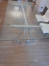 Vendo base per tavolo in ferro battuto in metallo pieno. Escluso cristallo altezza da terra cm 78 lunghezza cm 120 larghezza sostegni piano cm 70