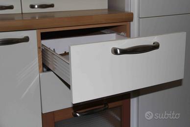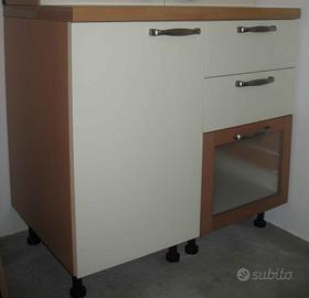 Composta da una base L45 ad un'anta con ripiano interno e una base L.45 con 2 cassetti + cestone con frontale legno e vetro.