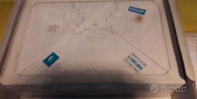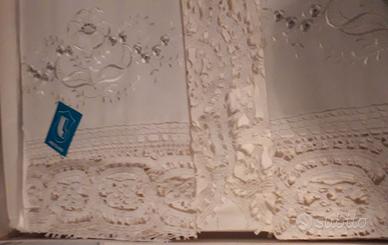 Tessuto di alta qualità in cotone rifinito a mano con pizzo ad uncinetto - composto da lenzuolo matrimoniale, due federe, copriletto in raso di seta, quattro asciugamani, tovaglia rettangolare con dodici tovaglioli