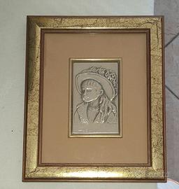 Vendesi bassorilievo in argento raffigurante una giovane fanciulla con cappello.