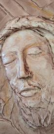 Bellissimo bassorilievo raffigurante il volto di Gesù, realizzato in ceramica con colori tenui e delicati. Le foto non rendono bene il colore, è in sfumature di rosa antico. Ci sono un paio di crepe che sono state coperte con la colla - vedasi foto.
