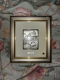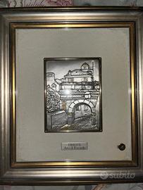 Quadretto con cornice in legno e bassorilievo in argento 925 Romagnoli rappresentante l’arco di Riccardo a Trieste
