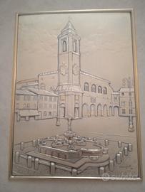 bassorilievo in lastra di argento raffigurante la piazza principale della città di Fano (pu) opera unica e pregevole eseguita a mano