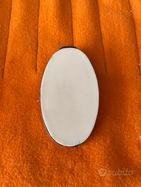 Vendo raffinata placca sacra in argento massiccio 800 raffigurante la Maternità (Madonna con Bambino). L'oggetto è un pezzo di artigianato italiano di alta qualità, ideale come capoletto o come icona da esposizione. Dettagli dell'oggetto: Materiale: Argento 800 (punzonatura "800" ben visibile sulla lastra). Dimensioni: Altezza circa 8-9 cm (come da foto con metro). Soggetto: Rappresentazione artistica della Vergine con Gesù Bambino, con sfondo lavorato a griglia e finiture satinate/lucide.
