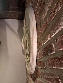 In vendita esclusiva un'opera di grande impatto artistico e materico: un bassorilievo ovale realizzato in marmo travertino ricomposto, raffigurante una scena allegorica di gusto classico. Non è un semplice quadro, ma una vera e propria scultura da parete che dona profondità e prestigio a qualsiasi ambiente. Dettagli Tecnici e Imponenza: •Dimensioni: 82 x 64 cm. •Profondità: Lo spessore raggiunge i 10 cm nel punto di massimo rilievo (il ginocchio della figura), creando un incredibile effetto tridimensionale. •Peso: Circa 16-18 kg, a testimonianza della solidità e della qualità del materiale. L'opera cattura la luce in modo unico grazie alla porosità naturale del travertino, rendendo i volumi vividi e armoniosi. Ideale come capofitto, elemento centrale di un salone o per valorizzare una parete in mattoni o pietra. OFFERTA SPECIALE "ANGOLO ROMANO": Questo pezzo fa parte di una collezione coordinata che comprende anche lo Specchio con cornice lavorata e il Vaso monumentale (h 60cm). •Prezzo del solo Bassorilievo: € 400 •Prezzo Trittico Completo (Bassorilievo + Specchio + Vaso): € 1.000 (Un'opportunità unica per arredare un intero angolo con uno stile imperiale coerente). CONDIZIONI DI CONSEGNA: •Consegna a domicilio: Entro un raggio di 30 km da San Donà di Piave con un supplemento di € 50. •Ritiro: Considerato il peso e la delicatezza del pezzo, non si effettua spedizione. Ritiro in loco o tramite trasportatore autorizzato organizzato dall'acquirente.