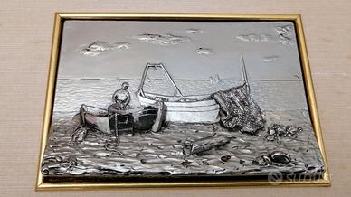 Bassorilievo argento laminato di Marcello Giorgio " è senza cornice". Misura larghezza cm 29, altezza cm 24. Misura opera interna in argento, larghezza cm 15, altezza cm 10.