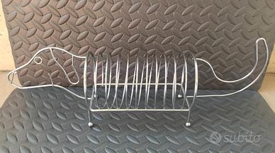 oggetto multiuso porta CD,libri ecc a forma di cane bassotto,acciaio cromato