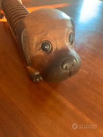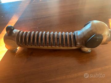 Simpatico bassotto in legno pregiato, intagliato artigianalmente, porta cd. Misure: lunghezza circa 64cm Larghezza circa 13 cm Altezza circa 19 circa