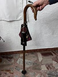 Raro bastone a sedile d’epoca, perfetto esempio di funzionalità e raffinatezza del passato. Realizzato in legno e metallo, con seduta pieghevole integrata, era l’accessorio ideale per cacciatori, viaggiatori o nobili dell’Ottocento.