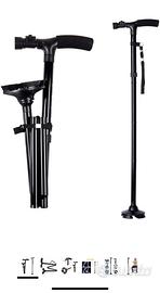 Bastone Da Passeggio Pieghevole Con Luce Torcia A Led E Altezza Regolabile