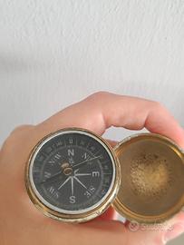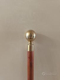 Vendo elegante bastone da passeggio vintage anni "80 in legno massello con dettagli in ottone lucido. La manopola sferica in ottone nasconde una bussola, rendendolo non solo un oggetto raffinato ma anche pratico per escursioni o collezionismo.