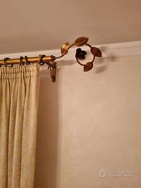 Vendo, in ottime condizioni, elegante bastone marca Oreggia, mt. 3.20 con tiro scorritenda, color oro anticato completo di anelli, terminali , supporto centrale e reggi embrasse.