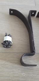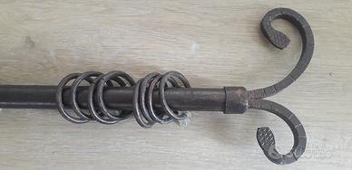 Bastone per tenda, in ferro battuto antichizzato color bronzo, con staffe, viti e corda per tiraggio.