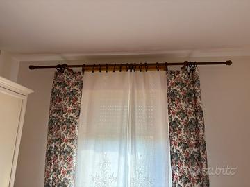 Bastone per tenda in legno con anelli Lunghezza 2,42 cm In regalo tenda in lino ricamata a mano e tende a fiori.