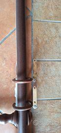 Bastone a muro per tenda in legno colore noce scuro, come nuovo. Lunghezza 190 cm....accorciabile. Supporti reggibastone a muro 21 cm.
