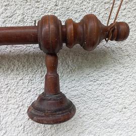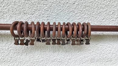 Completo di 15 anelli in legno (con mollette metalliche) e di supporti per l'aggancio laterale e frontale (adatto per muri ad angolo).
