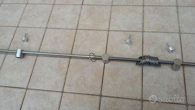 Bastone per tende montaggio a soffitto in acciaio satinato, completo di sistemi di fissaggio, anelli di scorrimento per le tende, bastone di scorrimento sempre in acciaio:
