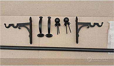 Bastone per tenda in ferro battuto lavorato a mano degli anni '80, nuovo mai montato e ancora nella scatola originale, completo di accessori per il montaggio. Il bastone misura 160 cm. Valuto proposte ragionevoli.