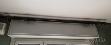 Vendo bastone per tende in noce completo di accessori: 2 supporti, anelli con pinze per appendere le tende. Lunghezza circa 3 metri. Perfetto, ottime condizioni