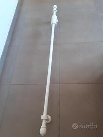 Bastone per tenda in legno laccato bianco misura m. 1,60 supporti lunghi cm 18 completo di anelli NUOVO disponibili vari pezzi MADE IN ITALY