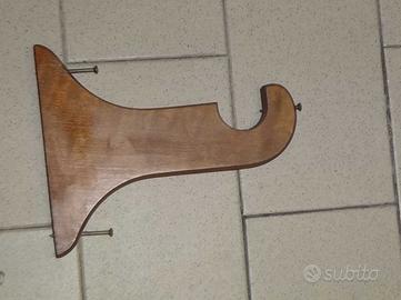 Bastone portatenda in legno scanalato marrone con un rigo color oro. Completo dei due finali, di 20 anelli con molle metalliche, delle due staffe con le rispettive viti.