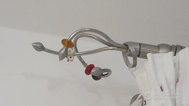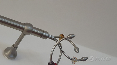 Per cambio arredamento, vendo bastone tenda in perfette condizioni, in acciaio satinato con puntali decorati, con perline Murano. Lunghezza 190.