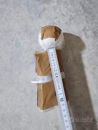 Vendo robusto bastone per tenda in metallo verniciato bianco sporco, completo di terminali decorativi a sfera e supporti.