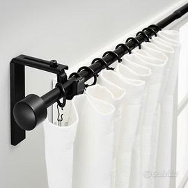 Bastone tenda regolabile, con supporti per parete/soffitto e terminali.