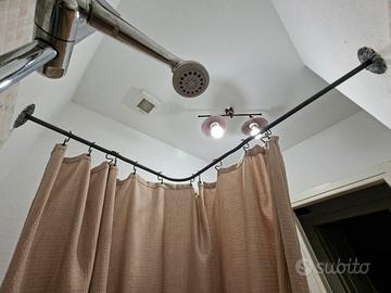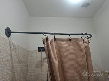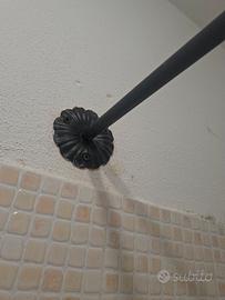 Bastone per tenda doccia. adatto a docce rettangolari con piatto circa 84x67 cm. Fatto a mano in ferro battuto, molto decorativo. con supporti a fiore avvitabili. In perfette condizioni.