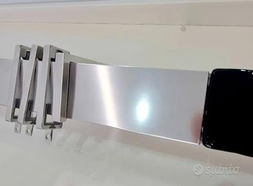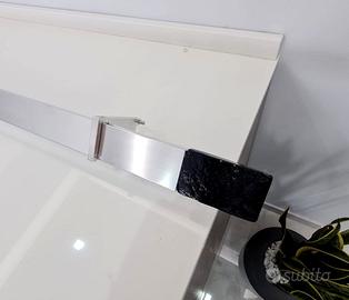 Vendo bastone tenda marca "Materya" in acciaio moderno con finali in vetro nero, e anelli reggitenda in acciaio e frusta. Per una tenda larga mt 1,80