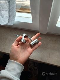 Vendo bastone per tenda in metallo argentato, (immagino acciaio in quanto è molto solido) con dettaglio "foglia" su entrambi i lati. È incluso l'attacco come da foto, le viti e l'asta stessa. Ritiro a domicilio in quanto troppo lunga per essere spedita, zona Verona verso Mantova.