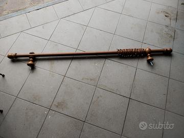 Bastone per tende in ottimo stato compreso di supporti e di 16 anelli con gancio metallico, sono presenti anche gli inserti ad espansione per il muro originali ma sono deformati ed è meglio acquistarli nuovi in un qualsiasi ferramenta a meno di un euro.