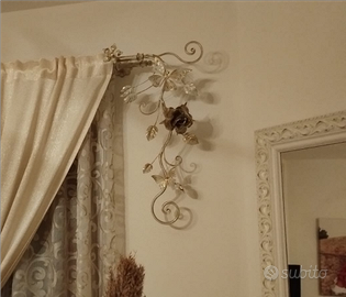 Vendo vari bastoni portatenda in ferro battuto molto originali fatti a mano costituiti da: terminale a ramo pendente con rose fatte a mano, bastone in ferro , terminale a riccio , due staffe a fiore . gli eventuali anelli non sono inclusi. Oggetti unici nel loro genere veramente originali colore marrone con pennellature oro disponibile anche bianco con pennellature di oro, tutto dorato o tutto argentato o possibilità di colorarli diversamente. possibilità di realizzarli anche a doppio bastone disponibili anche altri modelli possibilità di effettuare la spedizione Per informazioni potete contattarmi anche tramite WhatsApp al numero 3476188498 I prezzi dipendono dal modello e comunque partono da 130 euro