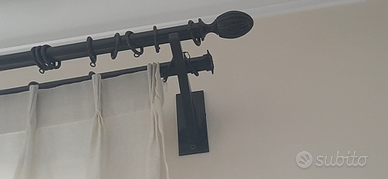 1 bastone doppio per tende in ferro nero con pigna terminale da m. 2,45 Zona Prati Piazza Mazzini