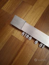 Tre guide a soffitto, color argento satinato. Lunghezze: circa 280, 186, 128 cm Altezza: 3,5 cm. Spessore: 2 cm